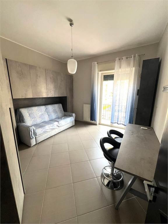 L’appartamento è completamente arredato ed è composto da ingresso, ampia zona cucina-soggiorno, due camere da letto, bagno e una spaziosa balconata con affaccio diretto su Viale Augusto, che garantisce luminosità e vivibilità agli ambienti.